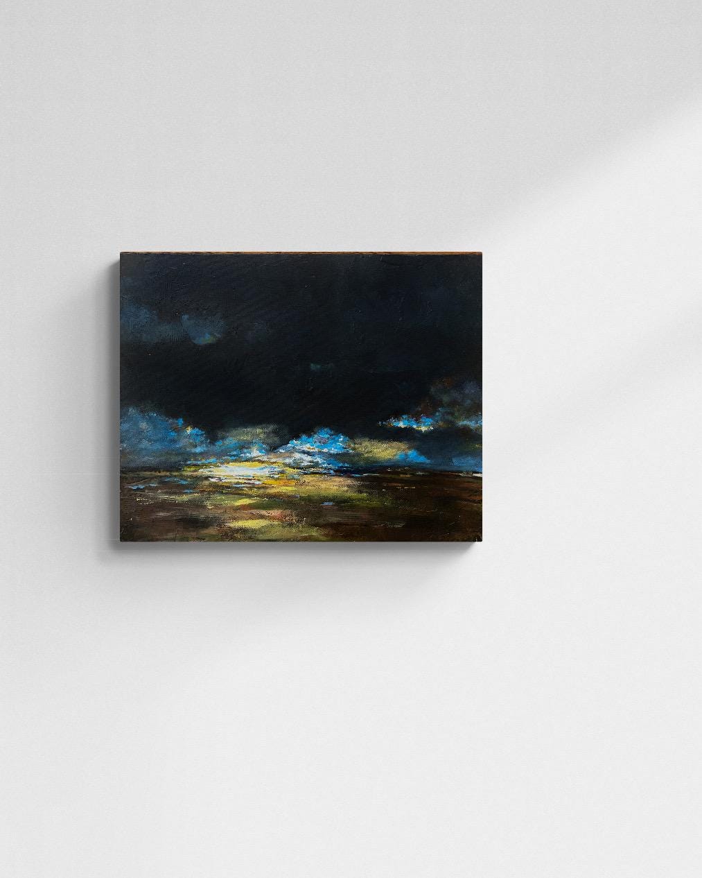 Transform your space with Stormy Horizon, a breathtaking original painting from Little Bleu Studio. This abstract landscape captures the contrast of a dramatic, brooding sky with shimmering golden plains. The textured brushwork and deep, moody tones evoke a sense of serenity amidst the storm, making it a captivating addition to any room.